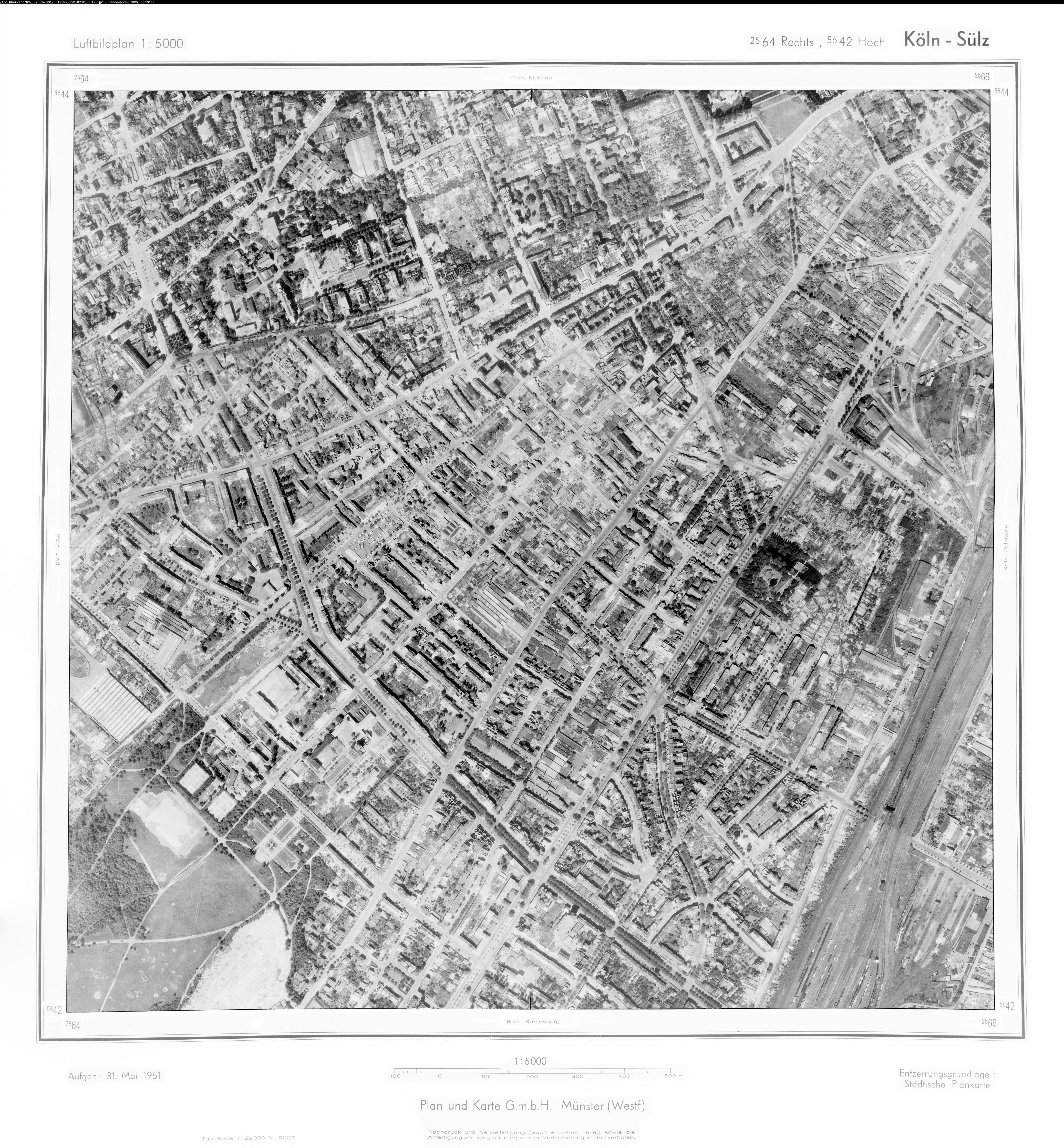 Köln Grosse Plantage 1951 Maßstab: 1:10.000