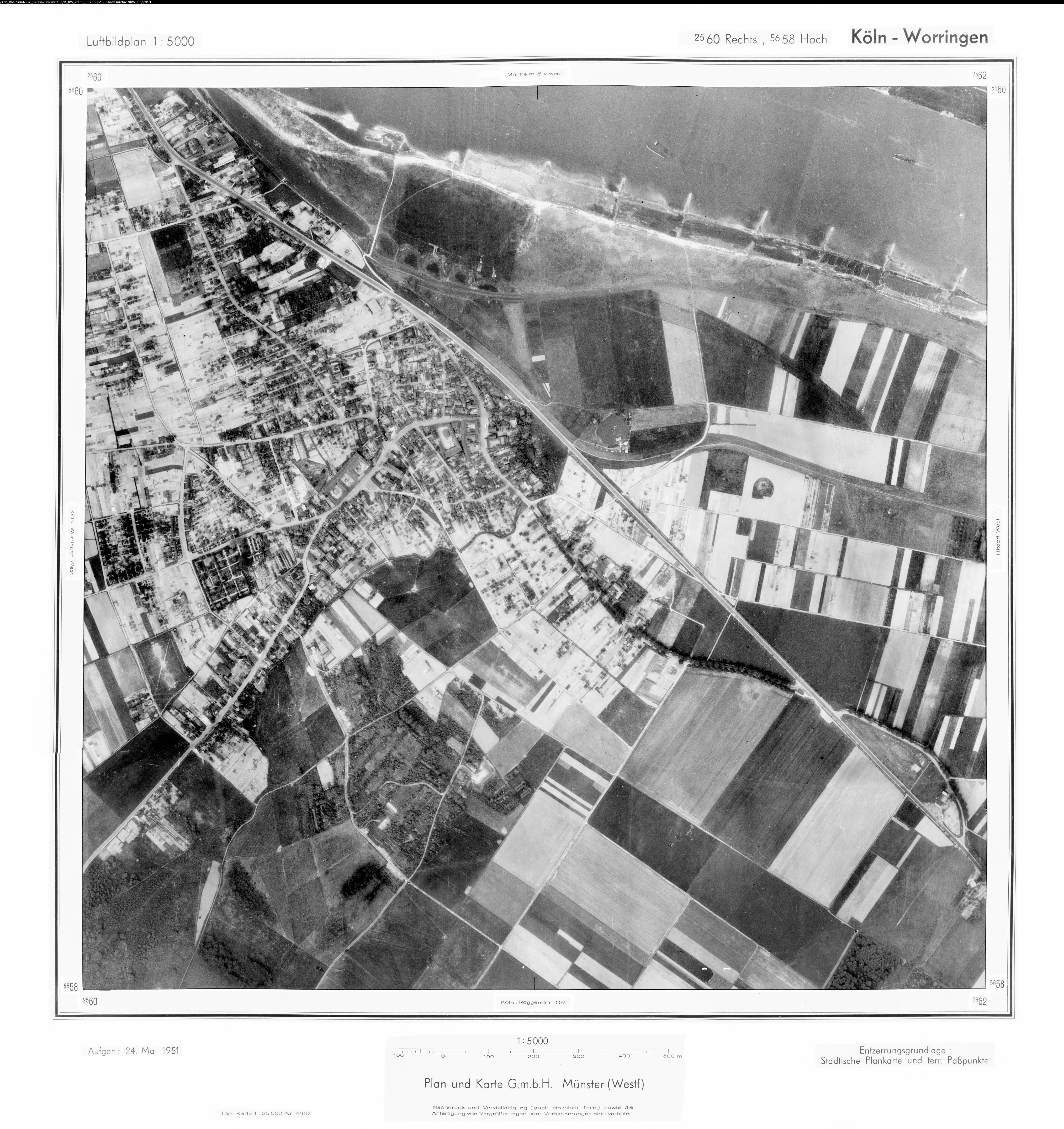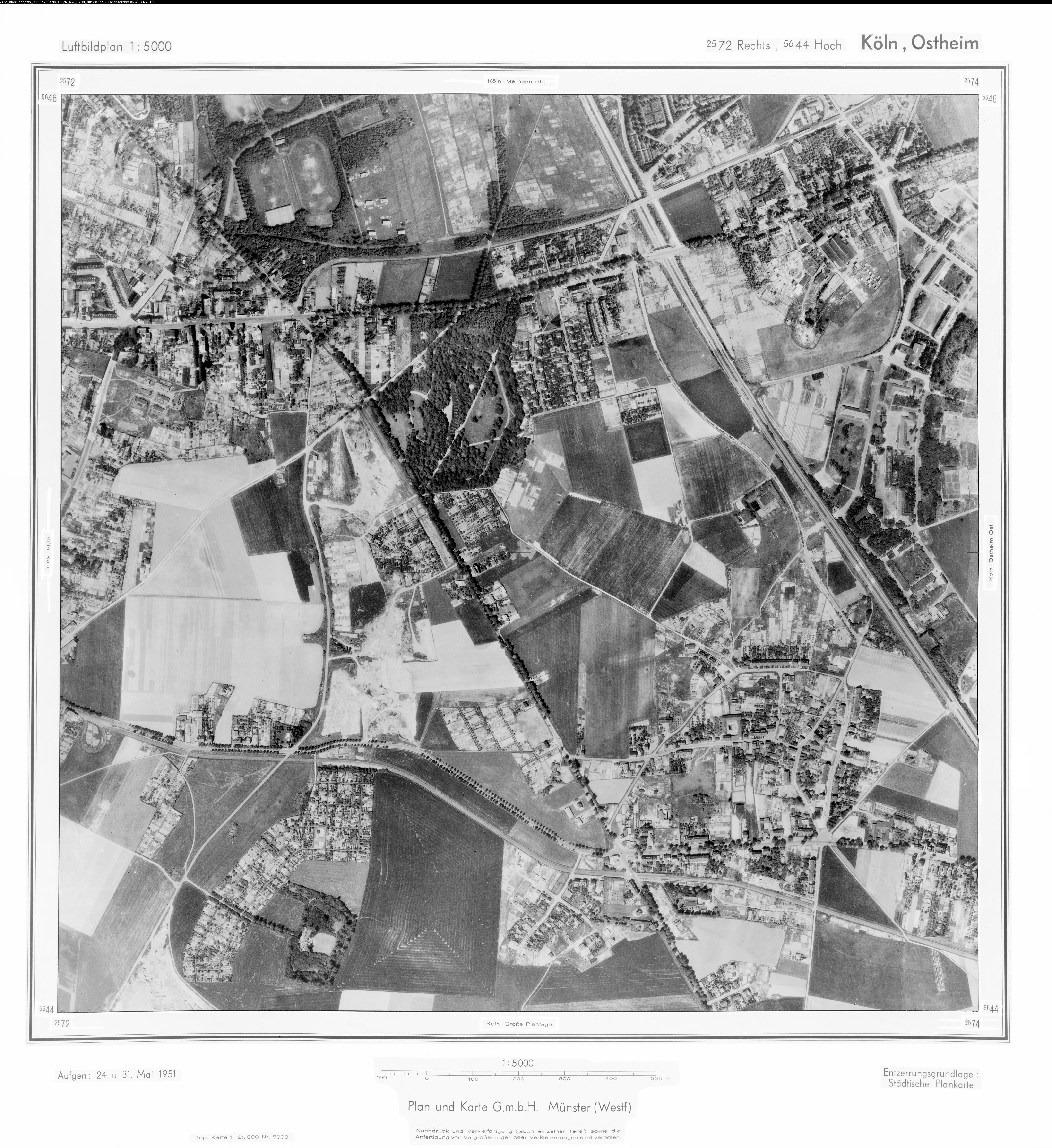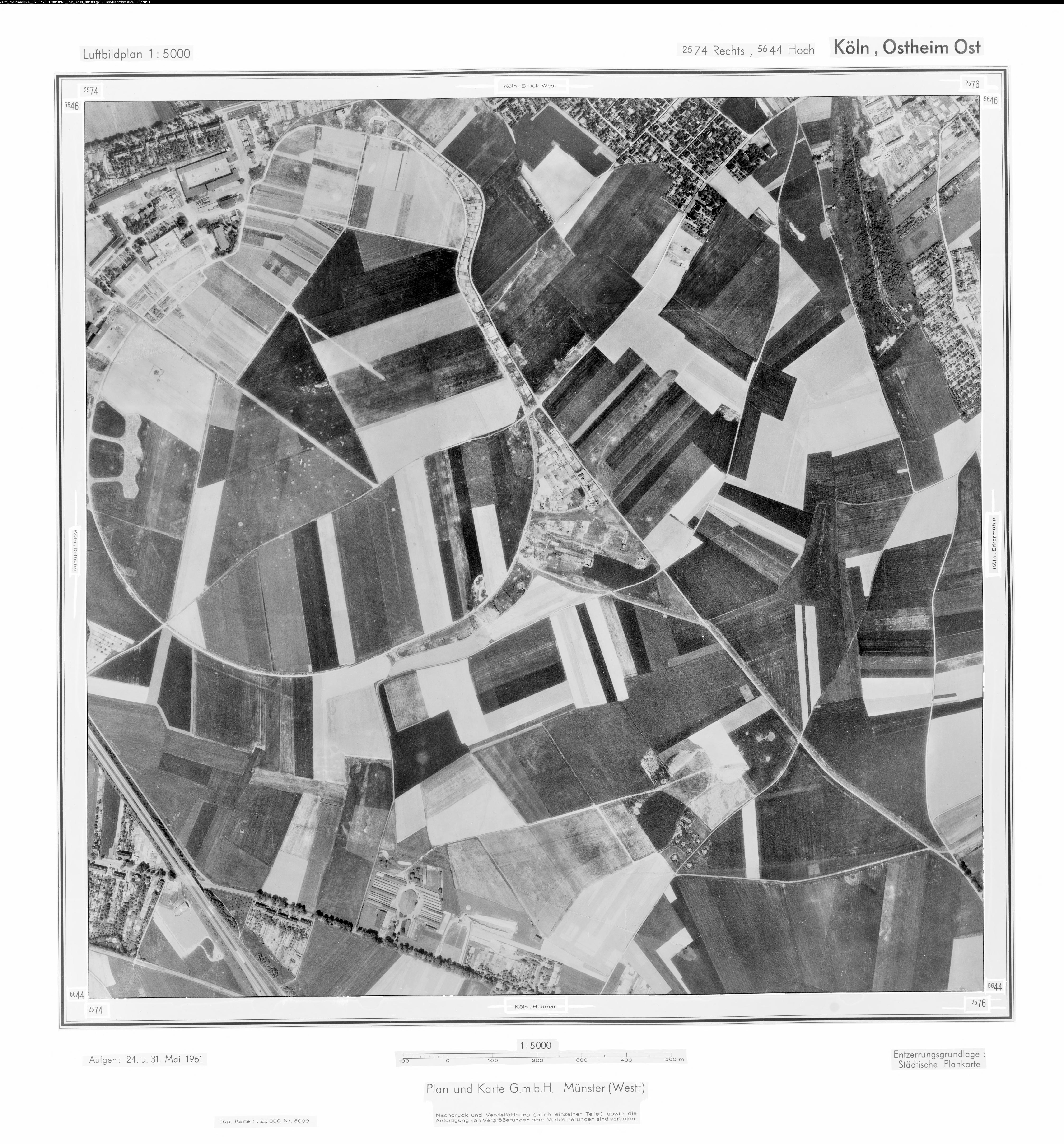 Köln Roggendorf 1951 Maßstab: 1:10.000