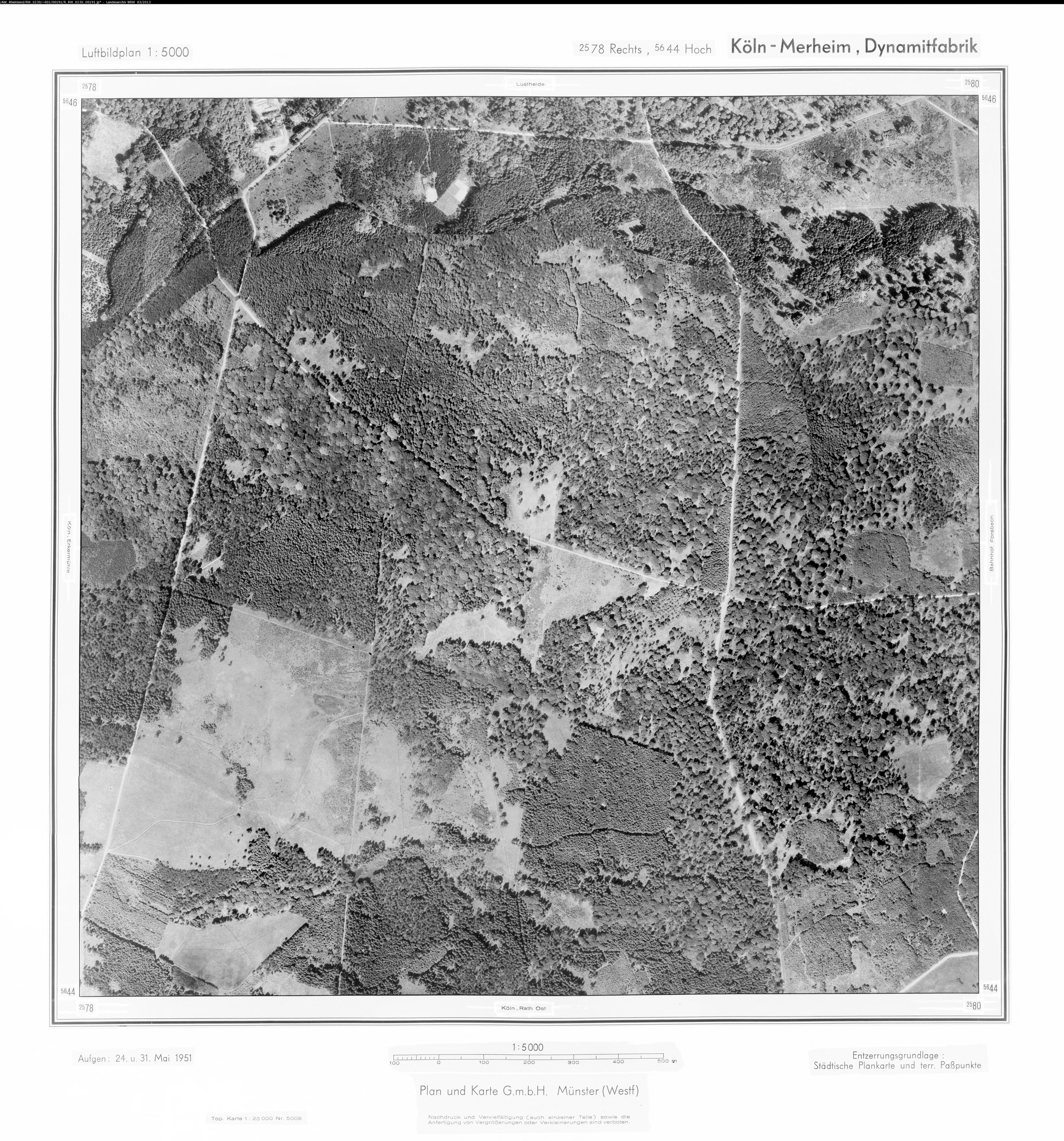 Köln Merheim Dynamitfabrik 1951 Maßstab: 1:10.000