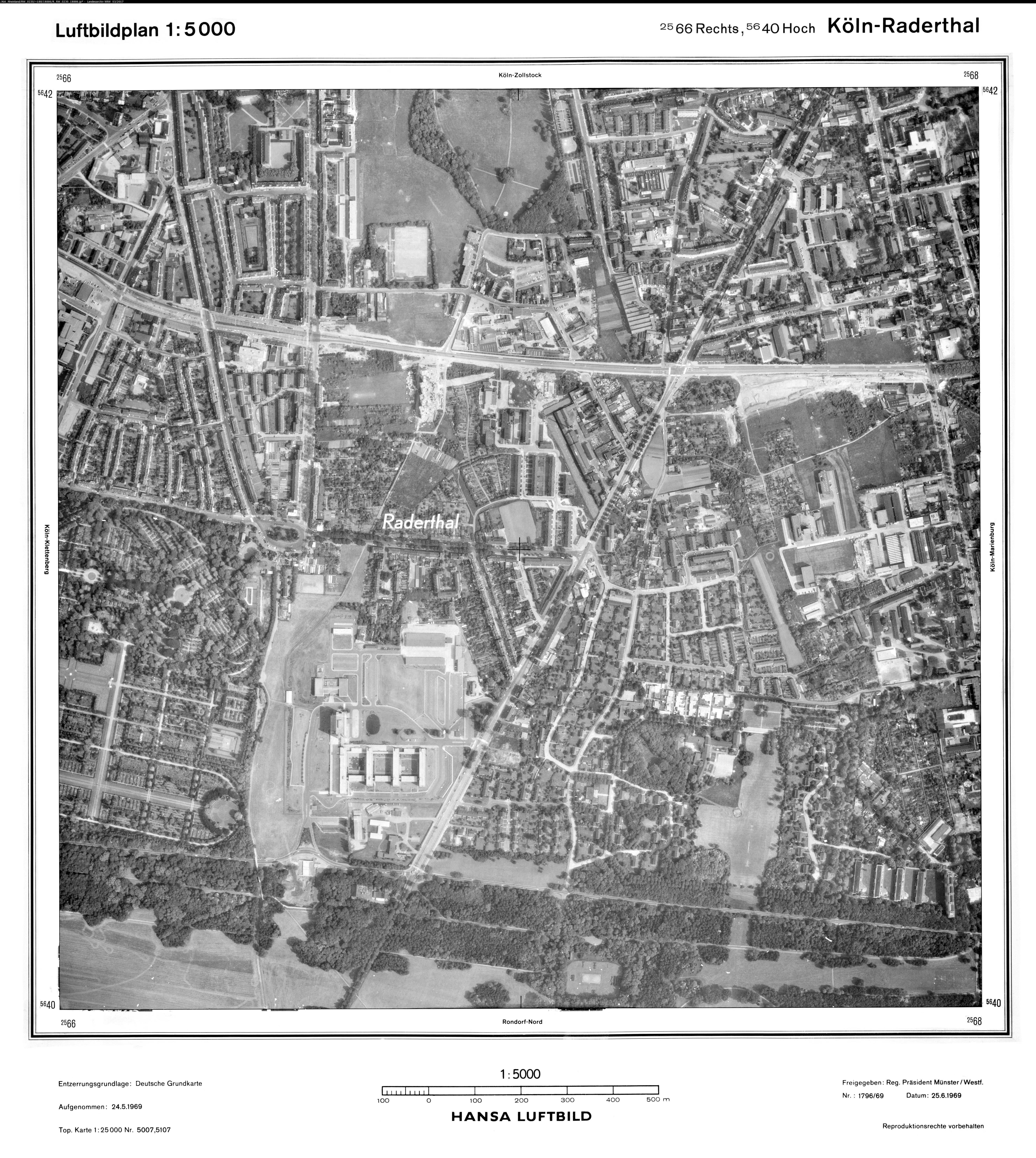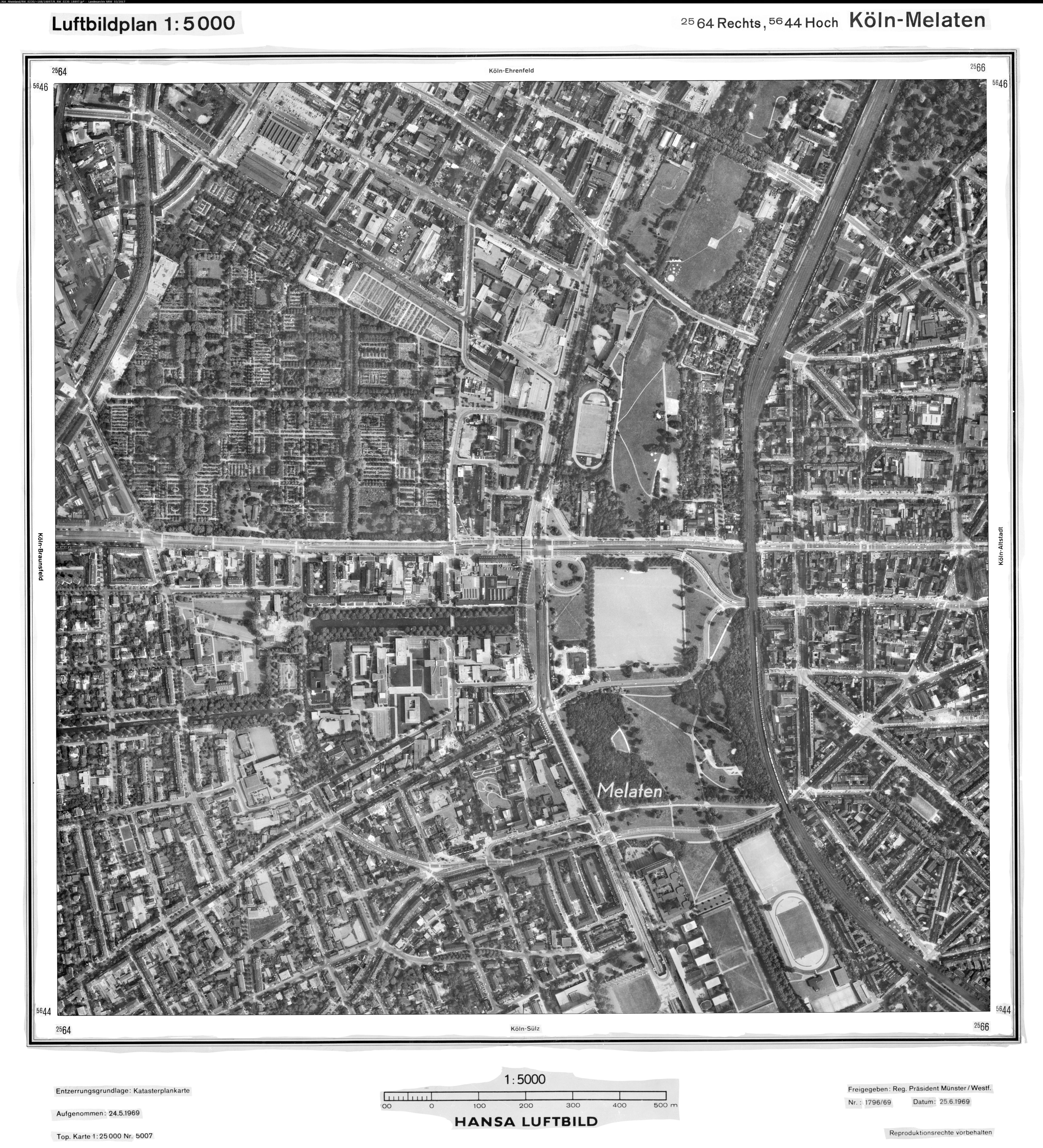 Köln Riehl 1969 Maßstab: 1:10.000