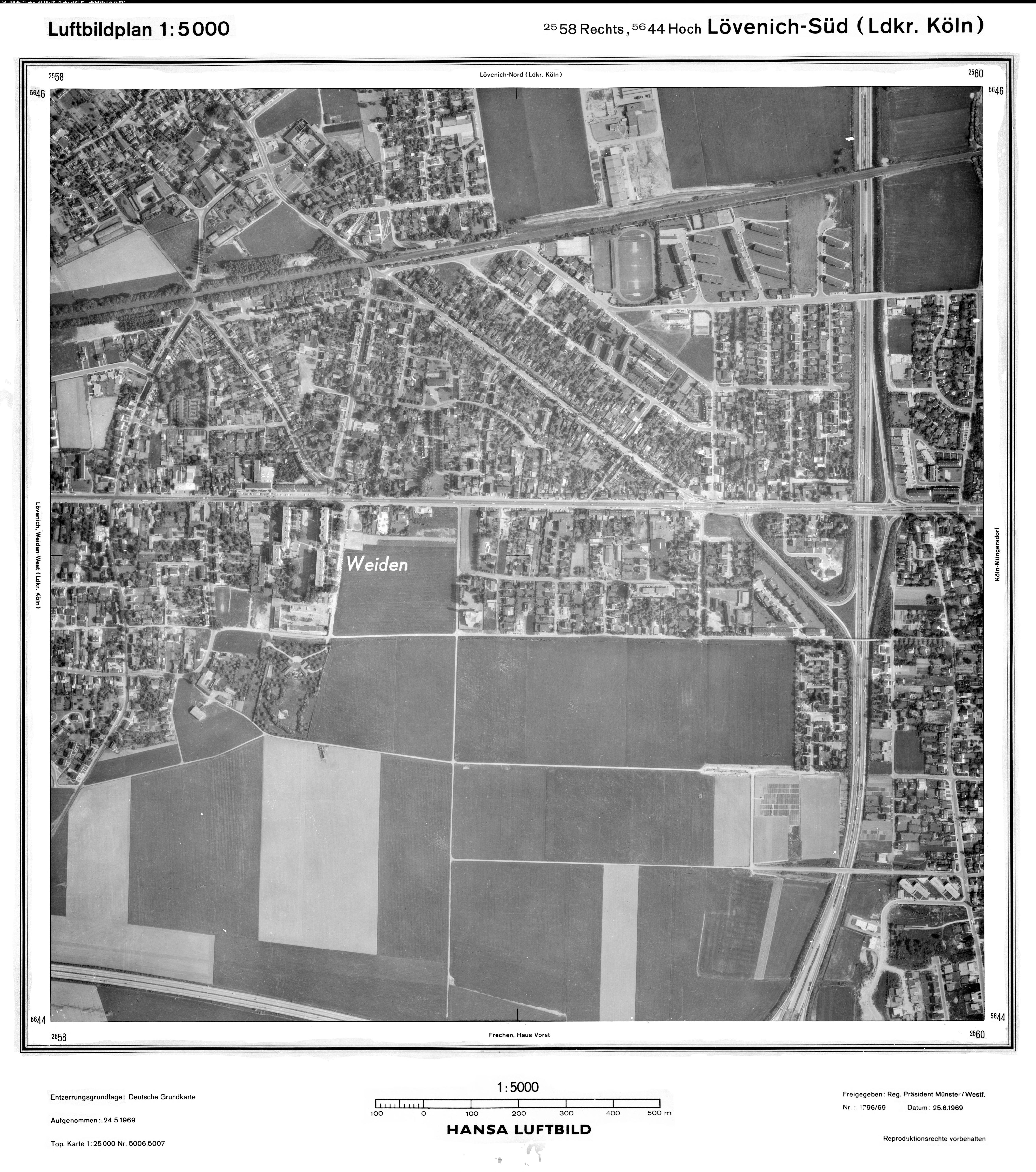 Lövenich Weiden West Ldkrs. Köln 1969 Maßstab: 1:10.000