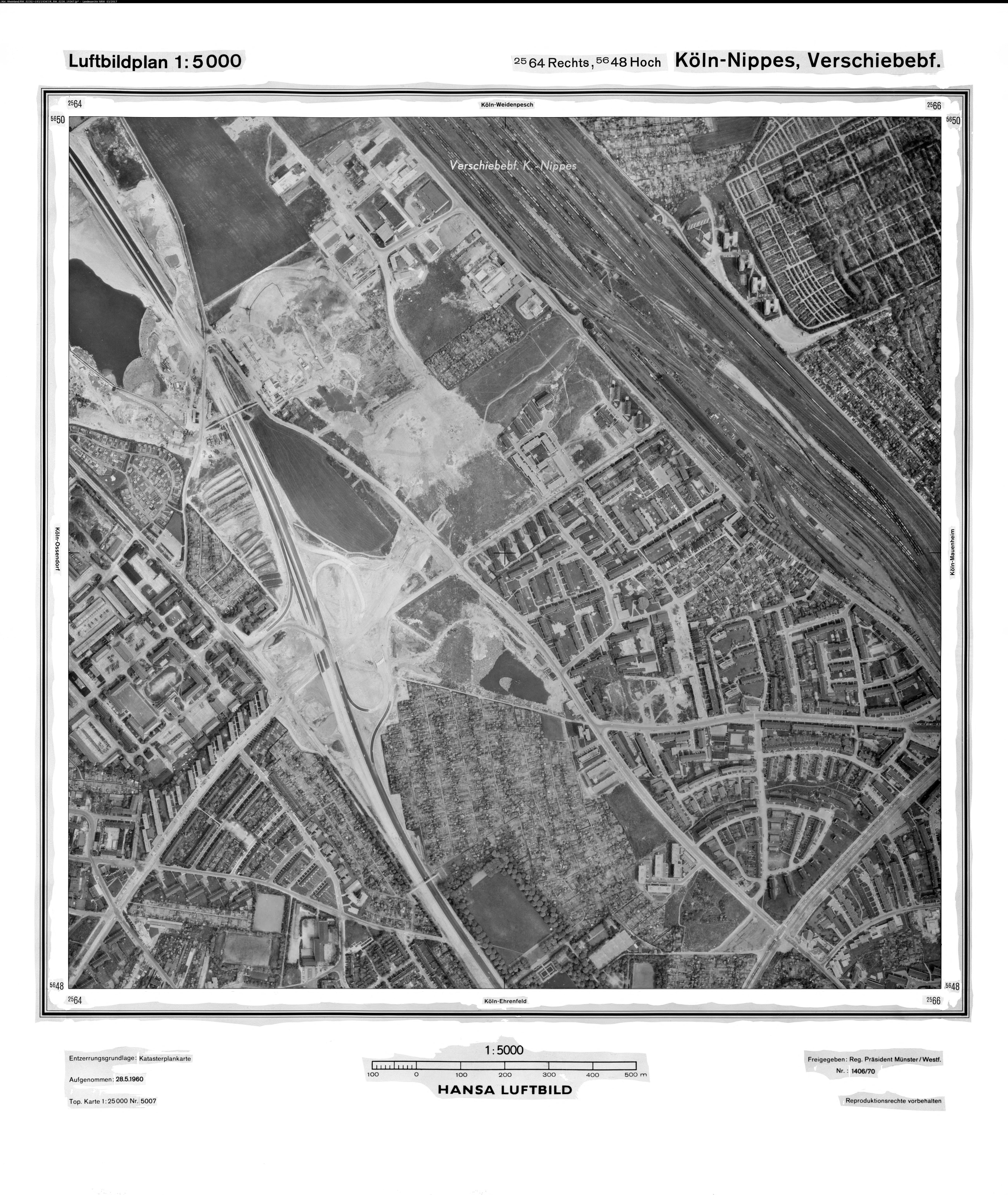 Köln Nippes Verschiebebahnhof 1970 Maßstab: 1:10.000