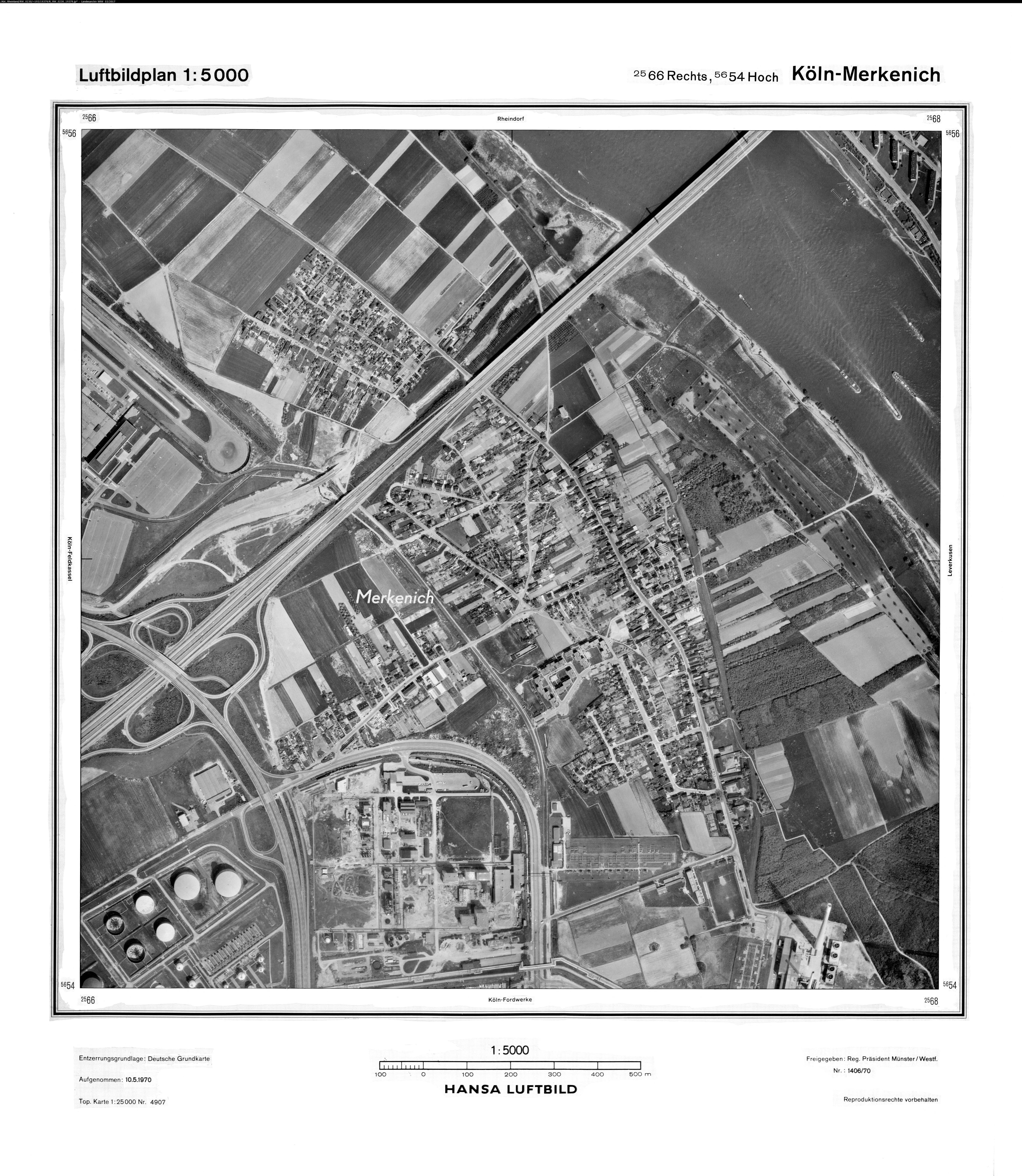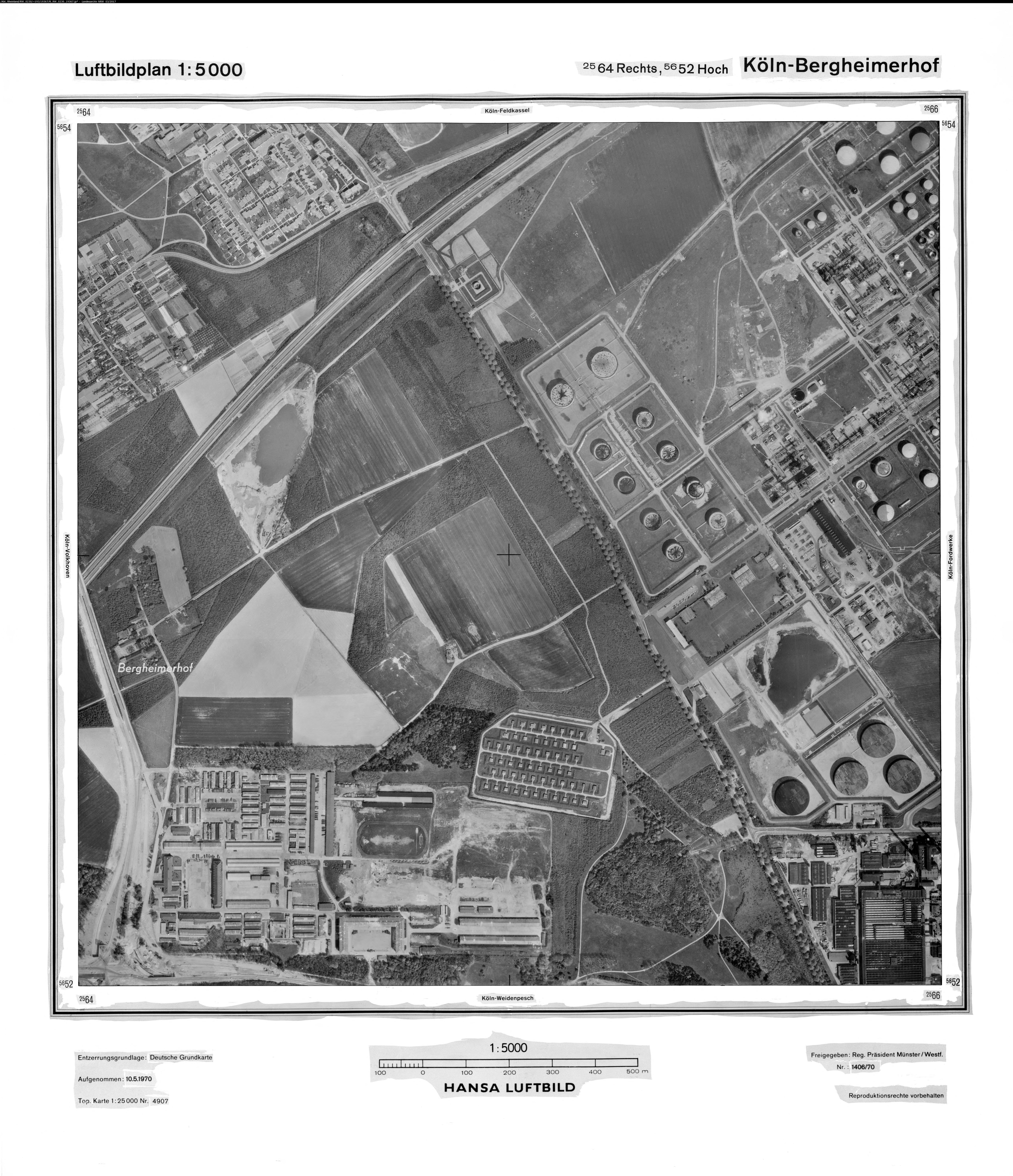 Köln Erkermühle 1970 Maßstab: 1:10.000